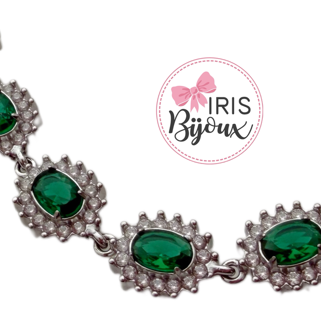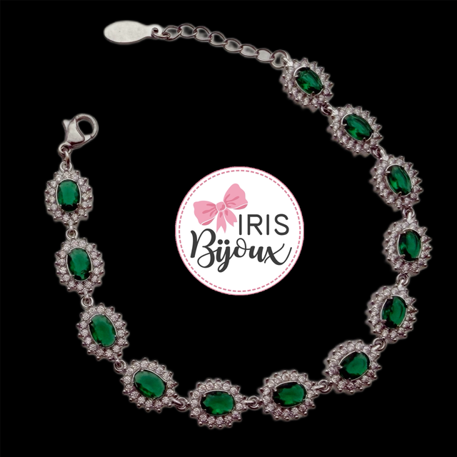 Il bracciale è composto da una serie di pietre verdi smeraldo dal taglio ovale, che offrono un colore intenso e profondo.