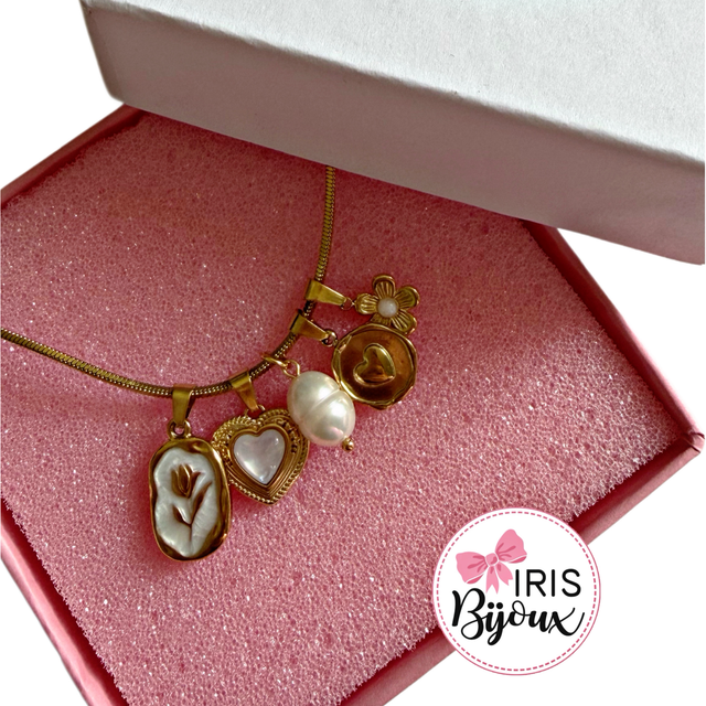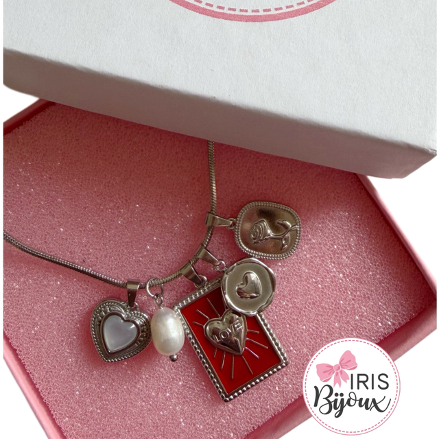 Una collana componibile in edizione limitata che non troverete in collezione. Composta da una maglia Snake e 5 Charms che costituiscono un messaggio, ogni ciondolo é legato all’altro da un filo logico. Oltre alla collana, troverete anche un bracciale con un solo ciondolo, una perla, ma che può essere impreziosito aggiungendo a proprio piacimento i ciondoli della collana, semplicemente sfilandoli e rinfilandoli. Il bello degli accessori componibili.