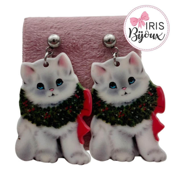 Orecchini natalizi gattini ghirlanda